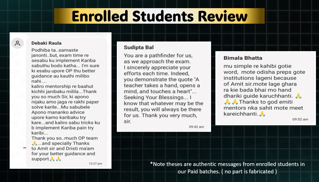 The content at Odisha Preps is the best in Odisha - built on superior academic depth, strategic structuring, and real exam relevance. It is tried, tested, and trusted by aspirants who have successfully cleared competitive examinations.