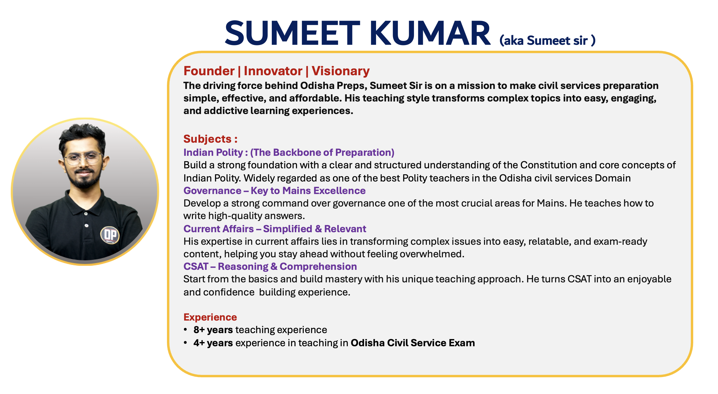 With Odisha Preps, you don’t need to run after multiple books and scattered sources. We have carefully integrated and refined content from all relevant materials available in the market - saving your time, energy, and confusion.